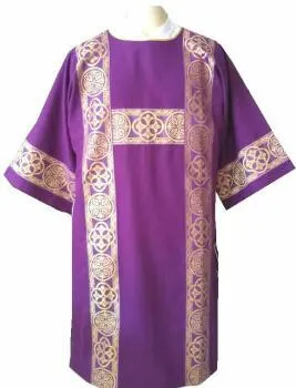 Essa Dalmática Roxa é adornada com um elegante galão litúrgico. Ela é confeccionada em um tecido leve, frio e de ótimo caimento, o que garante conforto e um visual impecável.